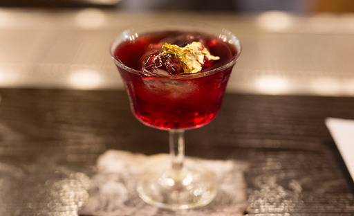 - полученный коктейль влить в охлажденный бокал через стрейнер и сито;