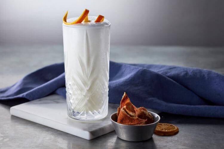 Итак, для приготовления этого изысканного коктейля, шейкер наполняем льдом, наливаем в него джин, сливки, кладем яичный белок, сахарную пудру и хорошенько перемешиваем. Затем отфильтровываем в коктейльный бокал и украшаем лимонной цедрой.