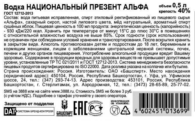 Водка Национальный презент Альфа / Башкортостан