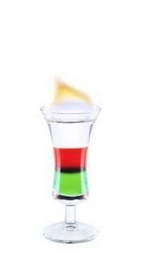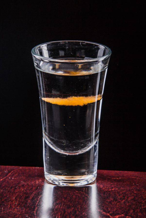 — в питейную элегантную емкость (стопку) наливается самбука (итальянский ликер с ароматом аниса и крепостью 38-42 градусов алкоголя, который обычно представляет собой прозрачную и сладкую жидкость) в объеме 25 миллилитров;