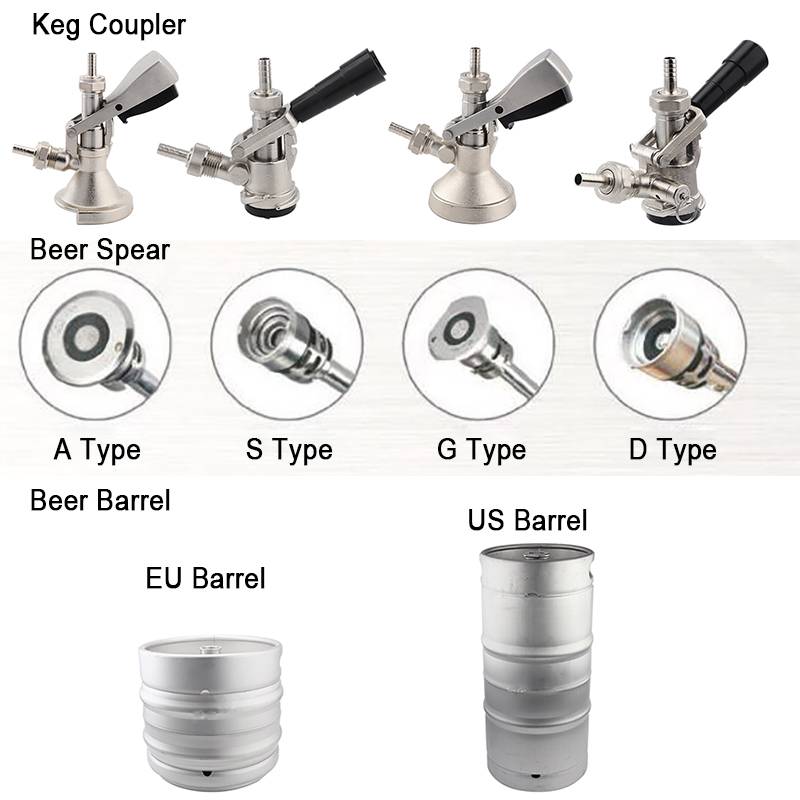 Важно знать, что фитинги кег бывают различных типов, которые несовместимы друг с другом. Таким образом производители кегового пива предохраняются от розлива пива конкурентов.Всего существует 6 типов кеговых фитингов: D, S, A, G, U, M.В Украине имеют хождение в основном 4 типа: A (Flash), M (Combi), G (усеченный Flash), S (Corb)Если вы не уверены в типе вашего кегового соединения, то его нужно обязательно уточнить у ваших поставщиков пива.В последнее время в Украине наблюдается дефицит кегов и кеговых соединений