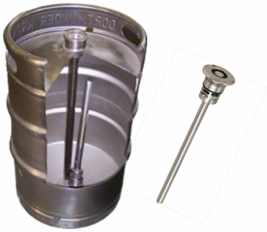 Кеги типа DIN бывают двух видов и разнятся в зависимости от допустимого давления (до 3 или до 7 бар). Изготавливаются из нержавеющей стали.