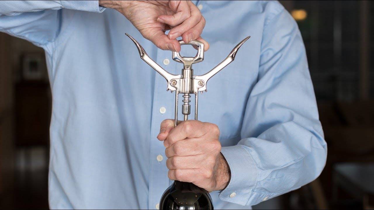Самый распространенный тип. Он есть на многих кухнях потому, что он в значительной степени надежен. Помещается прямо над верхней частью бутылки, просверливает отверстие в середине пробки. Чтобы выдернуть пробку, нажмите на рычаг.