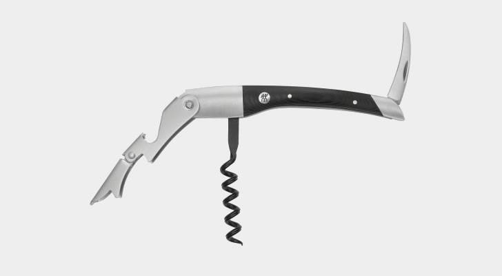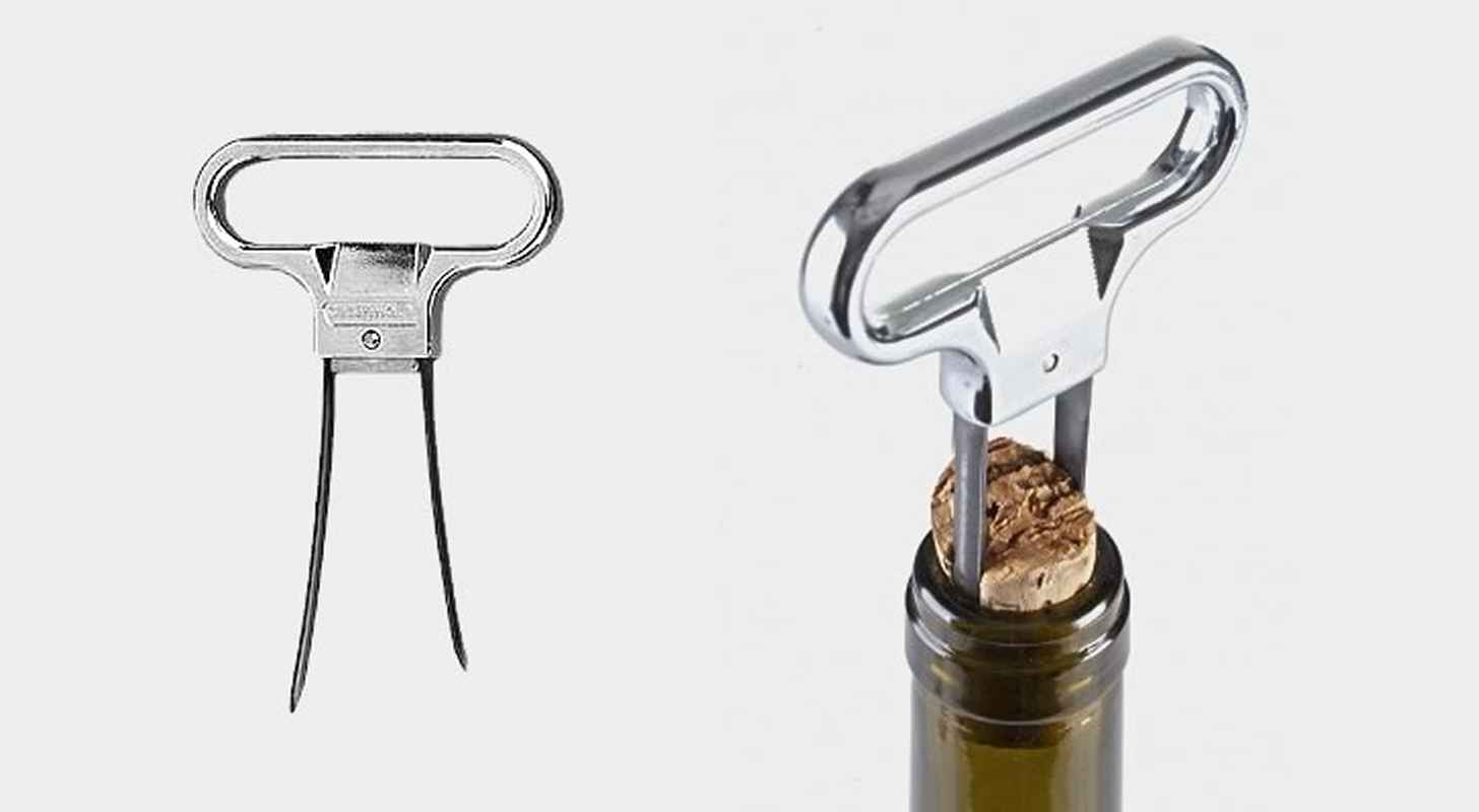 На самом деле его нельзя назвать штопором из-за отсутствия винта. Он состоит из длинного и более короткого лезвия. Вставьте их между стеклом и пробкой, немного расшевелите взад и вперед, пока лезвия полностью не погрузятся в тару, а затем потяните.