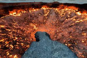 11. Те, кто хочет побывать возле настоящего ада, должны поехать в Туркменистан. Именно здесь находится постоянно горящий кратер. Он не прекращает пылать уже 40 лет. Диаметр около 70 метров.