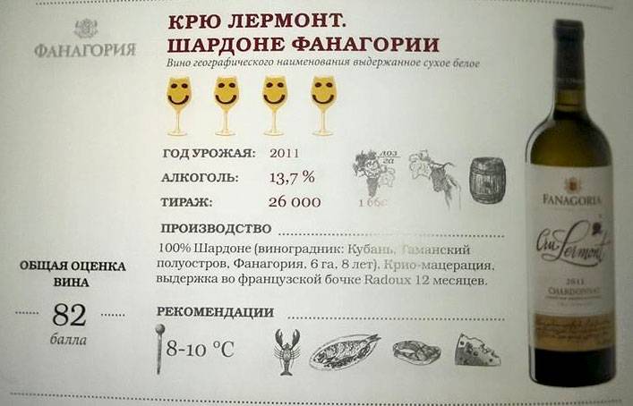 Следует знать, что Fanagoria производят из таких сортов винограда, как Каберне Совиньон, Алиготе, Саперави, Мерло, Рислинг. Производитель вина Фанагория предлагает к продаже разные варианты напитков. На прилавках вы можете увидеть белые виды вина, красные и игристые.