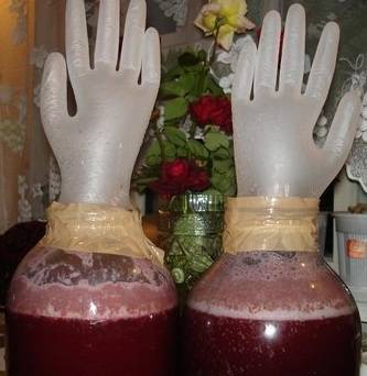 - На банки или бутыли с вином натягивают резиновую перчатку с проткнутым пальцем.
