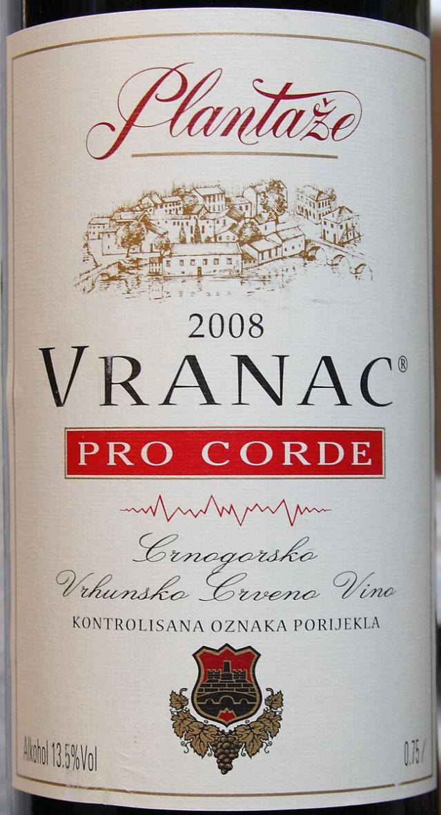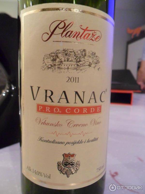 Наряду с крстач это вино является визитной карточкой страны. Для приготовления используется особый сорт винограда, растущий только в Черногории. Вранац – это сухое красное вино, обладающие терпким вкусом, рубиновым цветом. Основа настоящего алкогольного напитка – сорт Vranac. Его собирают вручную, так как плотность лозы высокая.