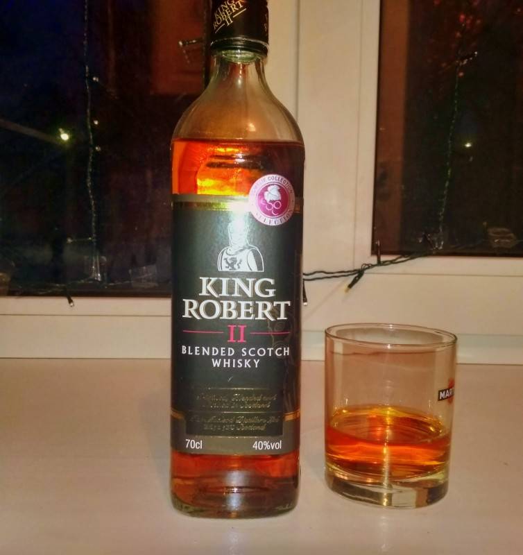 Скотч — один из бюджетных видов элитного алкоголя. Не требует он излишеств в сервировке. «Король Роберт II» в застолье нужно закусывать мясными блюдами, рыбой. После трапезы хорошим дополнением к нему будут орехи, плитка темного шоколада, фрукты.