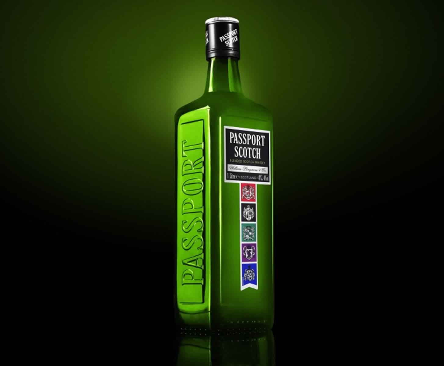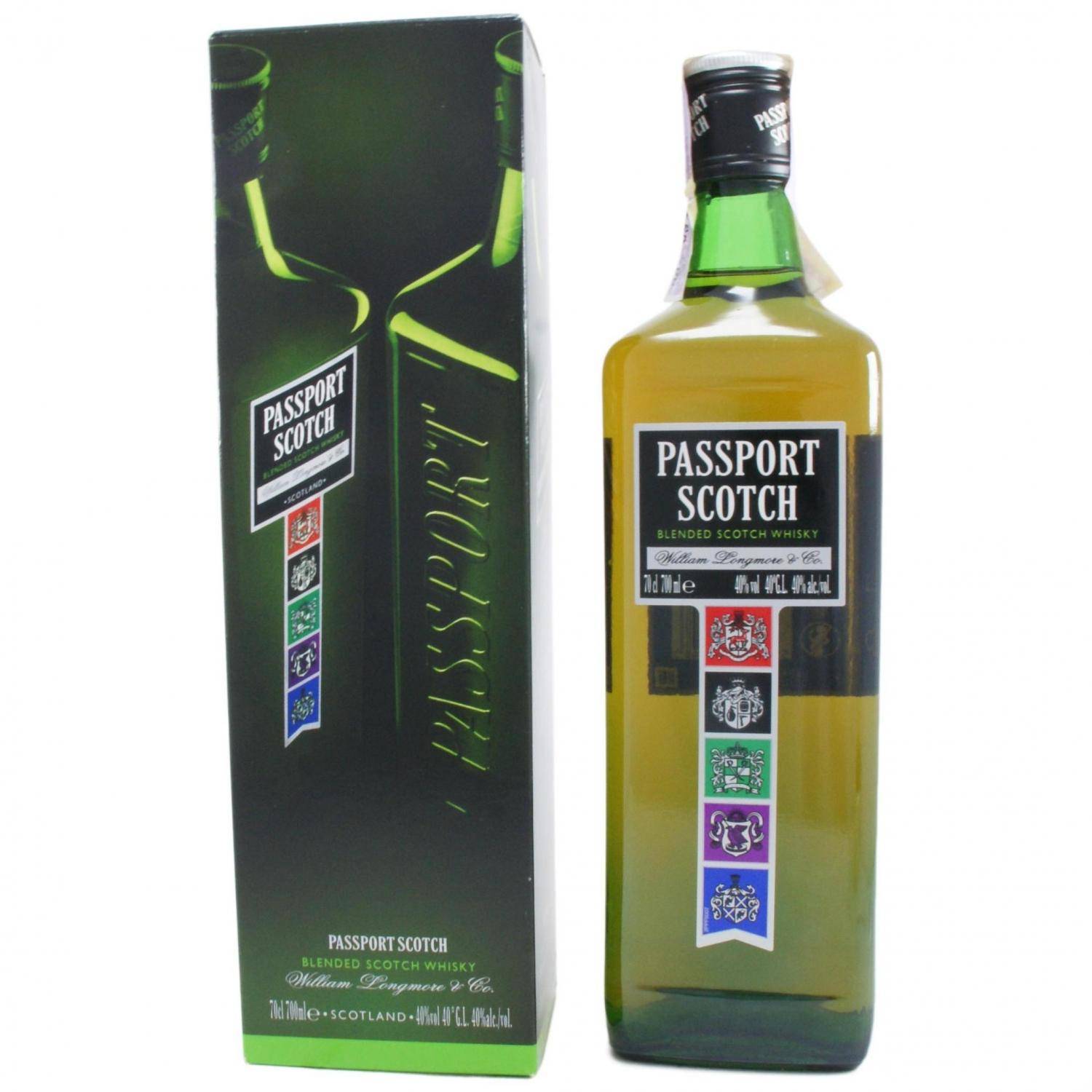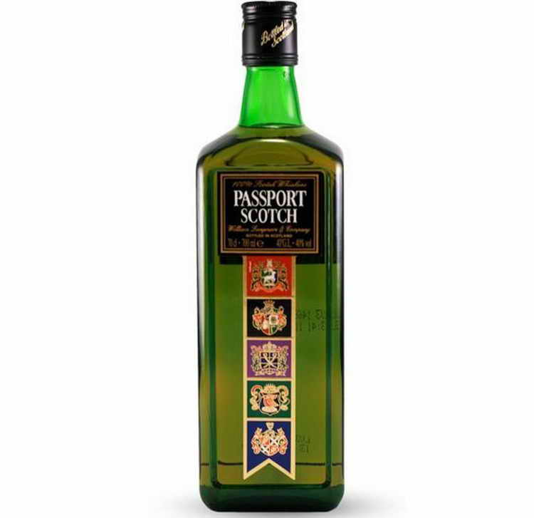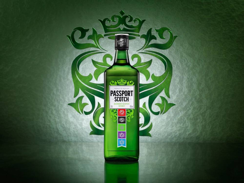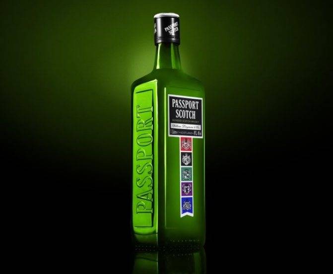Молодой купажированный виски «Passport Scotch», разлитый в оригинальные зеленые бутылки с яркой «геральдической» этикеткой, относится к категории «стандарт».