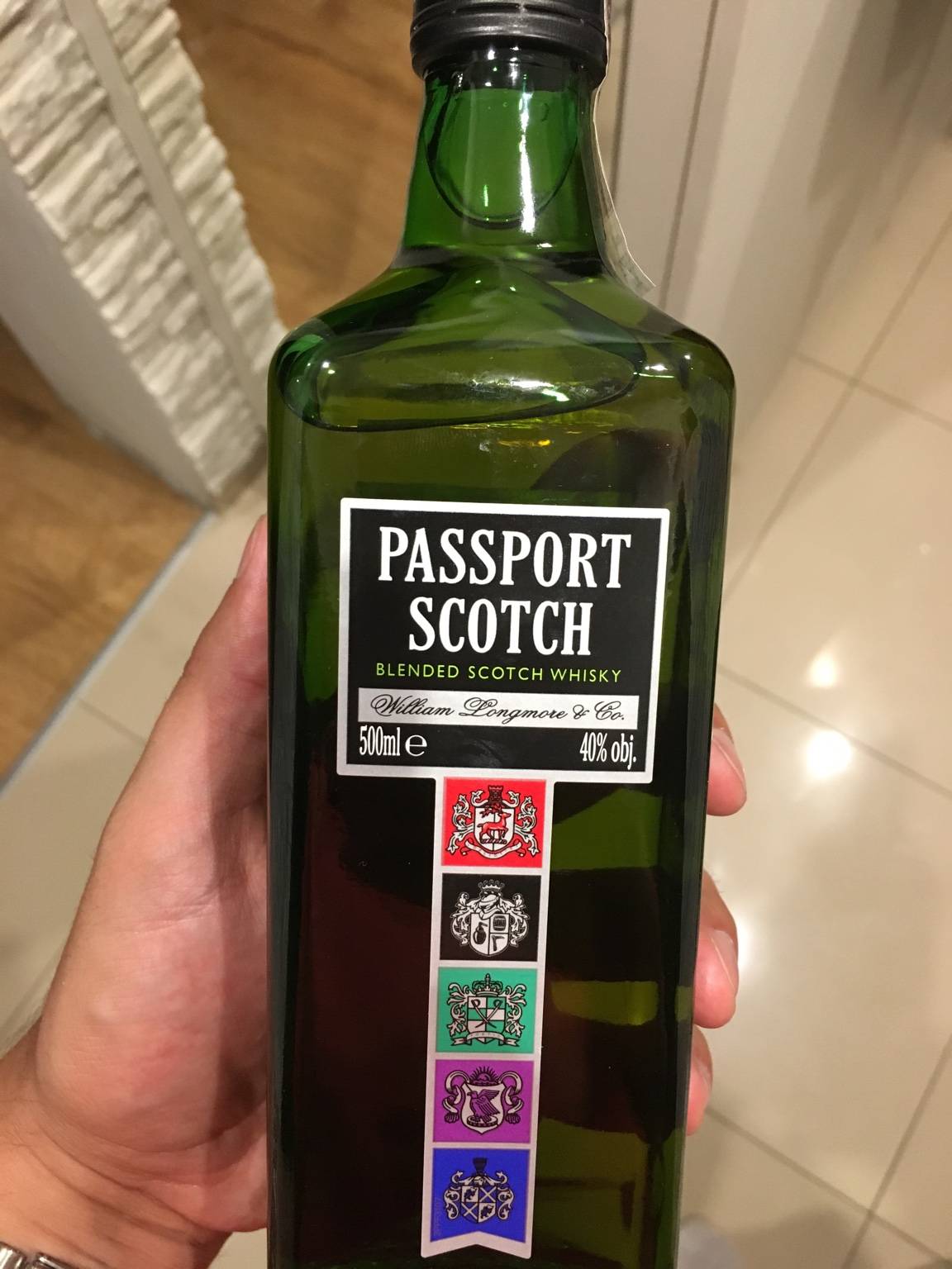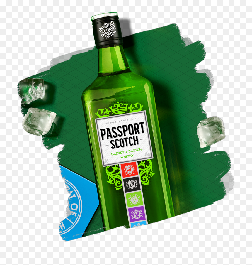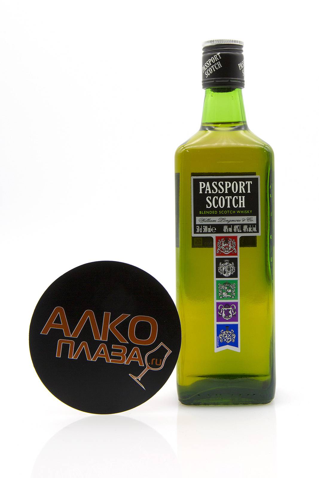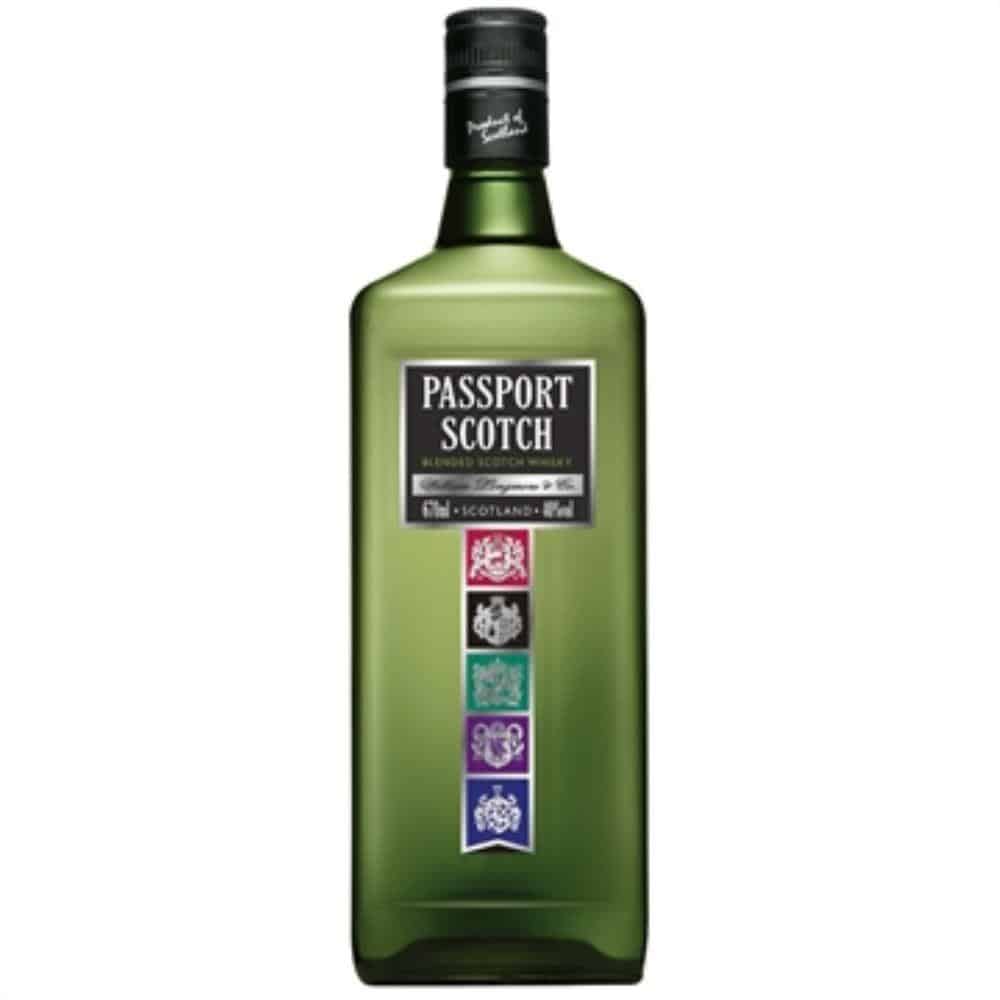 Молодой купажированный виски «Passport Scotch», разлитый в оригинальные зеленые бутылки с яркой «геральдической» этикеткой, относится к категории «стандарт».