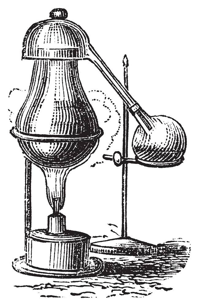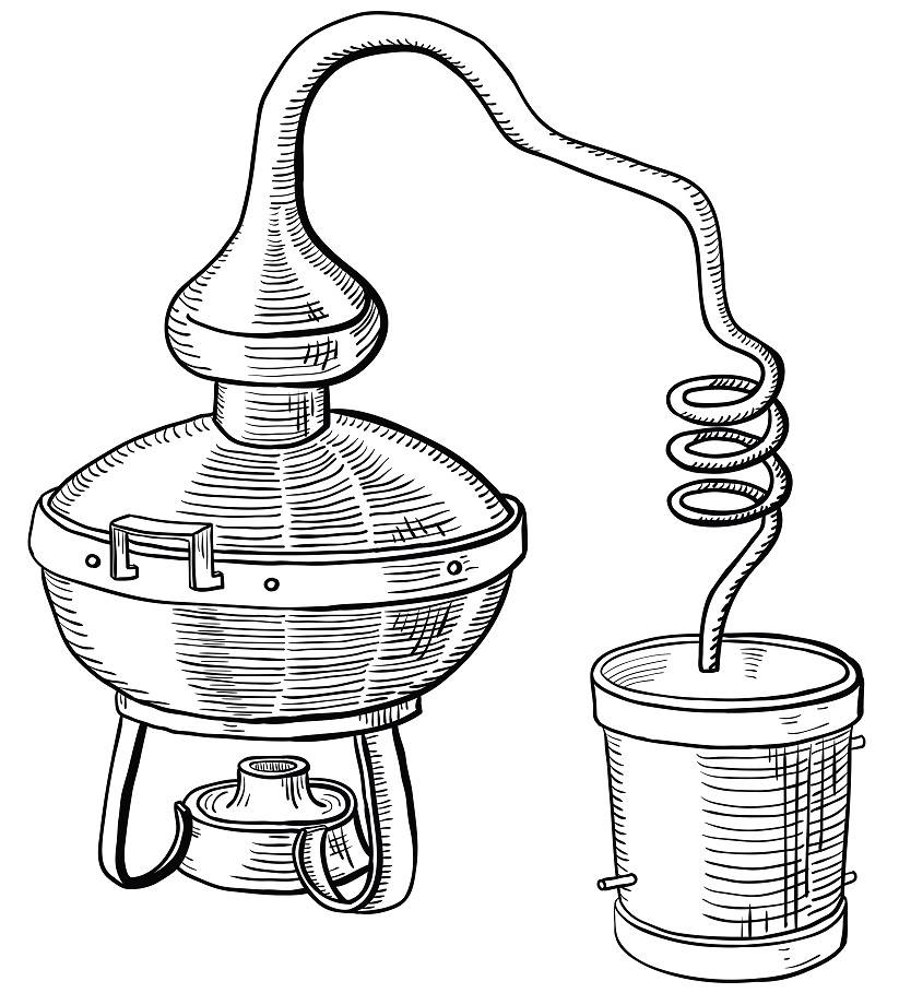 Брага заливалась в медный чайник-куб, под которым разводили костер. Закипевшие пары браги конденсировались в змеевике и попадали в приемную посуду. Получившуюся жидкость и называли «водой жизни» (uisge beatha). Первое шотландское письменное упоминание о виски датируется 1494-м год.