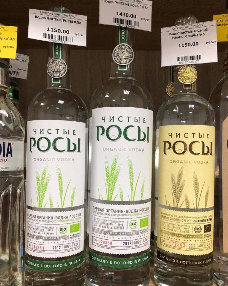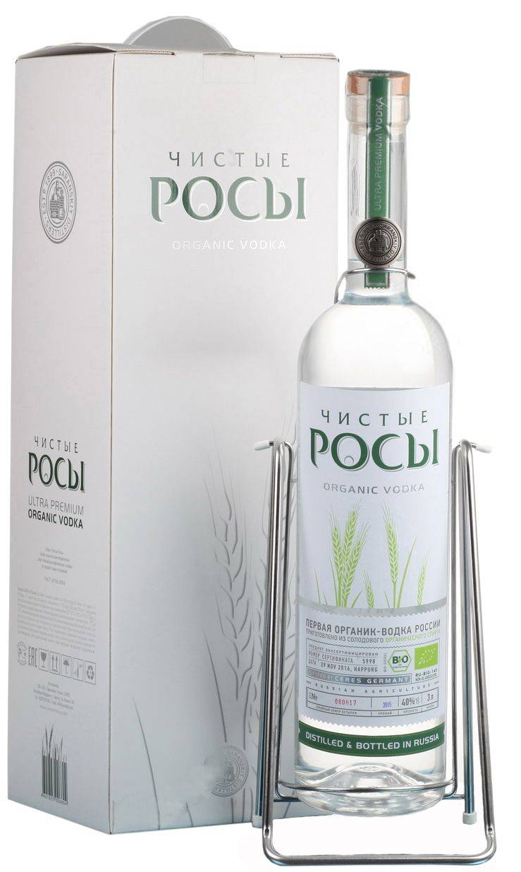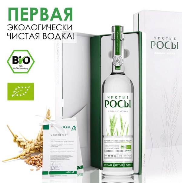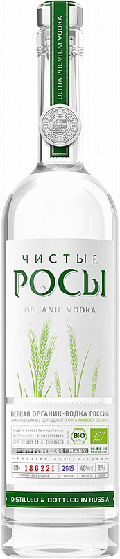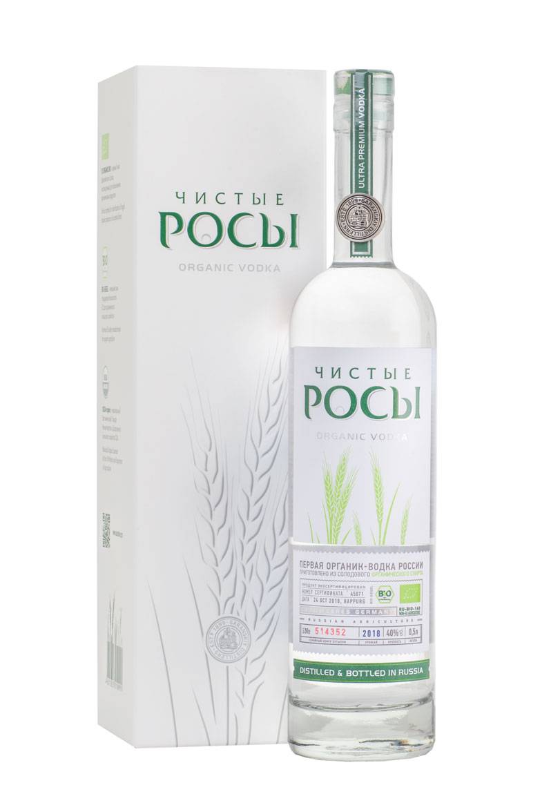 «Чистая роса» — единственный вид органической водки из всех крепких спиртных напитков среди российских брендов. Получен продукт в результате изготовления по особой технологии. Органик-водка не имеет аналогов среди отечественных продуктов.