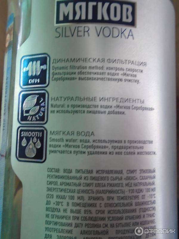 Myagkov Silver (40%). Напиток из ржаного спирта с сахаром, фруктозой и цветочным медом очищается с помощью серебряного фильтра. Это делает вкус ещё мягче и чище. Тонкий аромат без ярко выраженных нот, округлый классический вкус, согревающее послевкусие средней продолжительности.
