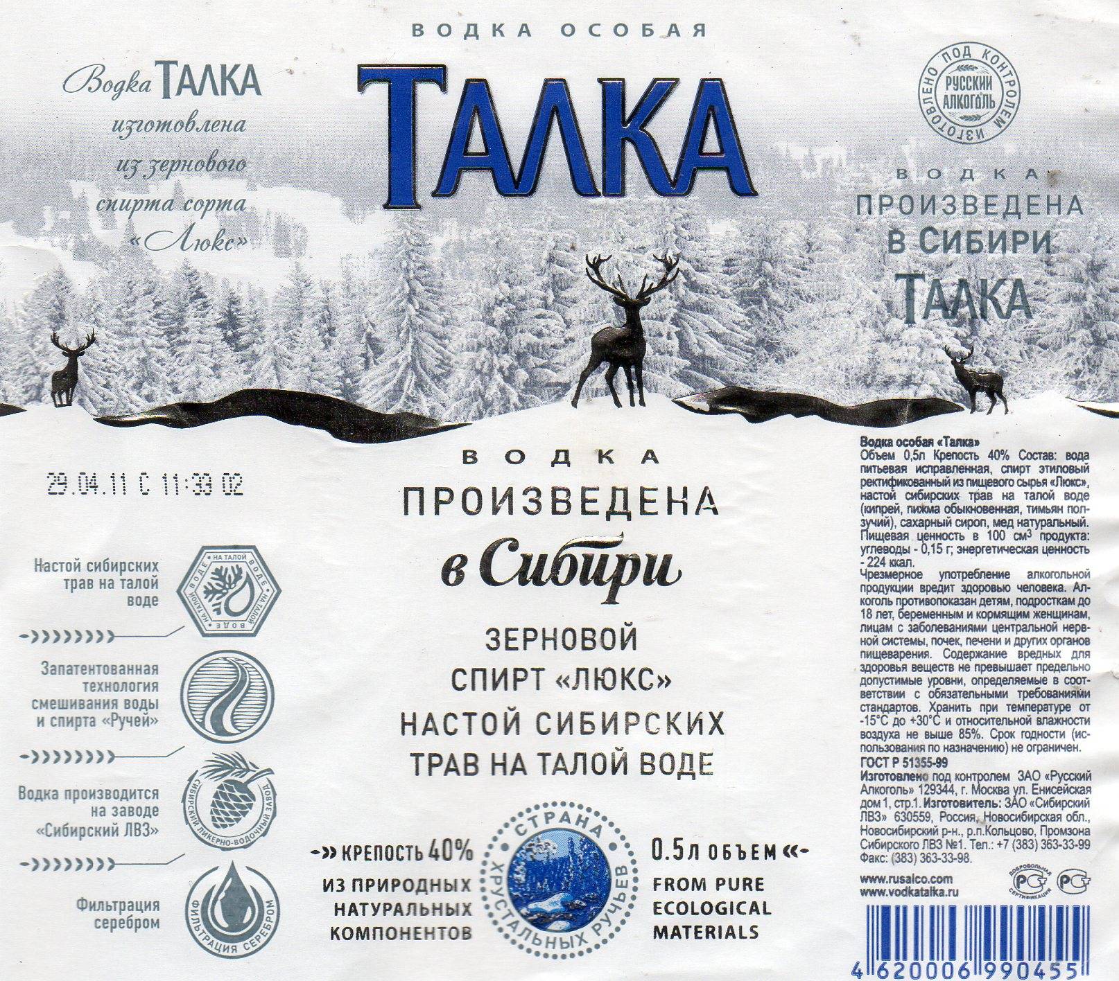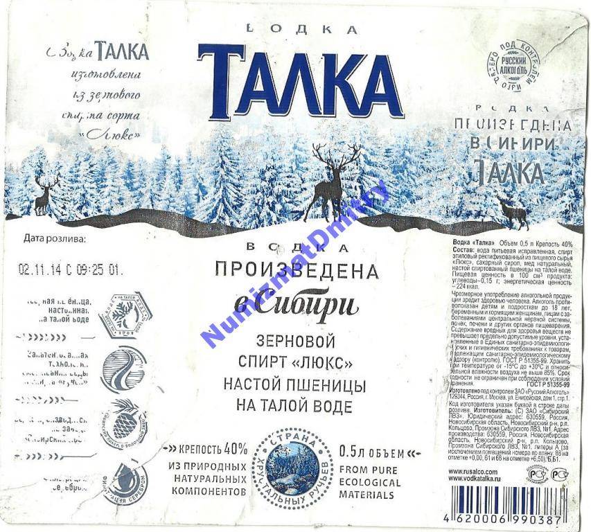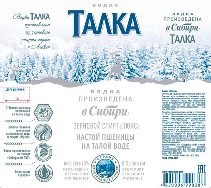 Именно такую этикетку печатают на одной из самых продаваемых в России бутылок. Кстати, само слово Талка пошло от используемой в производстве воды: пшеницу настаивают на талом льде.