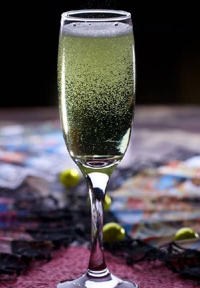 Оригинальный зеленый цвет дополняется мягким вкусом. За счет углекислого газа в шампанском опьянение наступает очень быстро. Лучший вариант чтобы быстро «напиться и забыться».