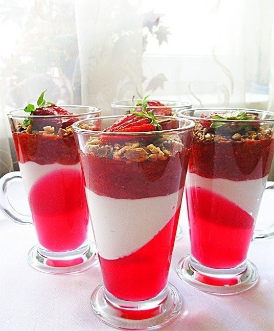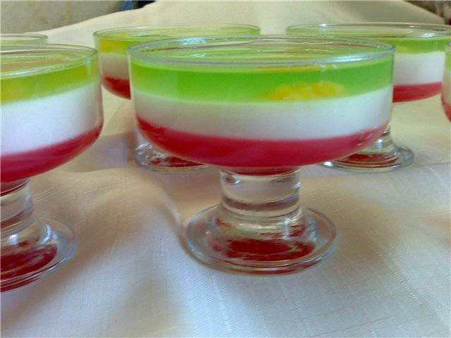 Положить сверху по 2 ч. ложки желе (любого, на ваш вкус).