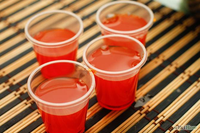 Этот рецепт прост, а метод приготовления быстр. Причем не потребуется много разных составляющих. Необходимо приготовить желатин, горячую воду и алкоголесодержащий напиток, вполне подойдут водка, текила, виски, но допустимо использование вина или шампанского.