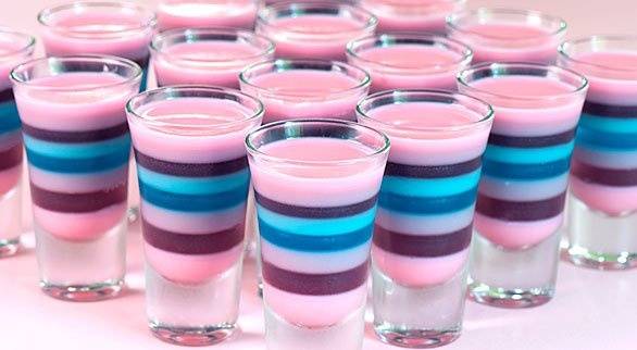 - Приготовить посуду. Лучше всего готовые шоты смотрятся в рюмках, стопках, но вместе с ними нужно подавать ложечки. Более удобно подавать алкогольное желе в бумажных формочках.