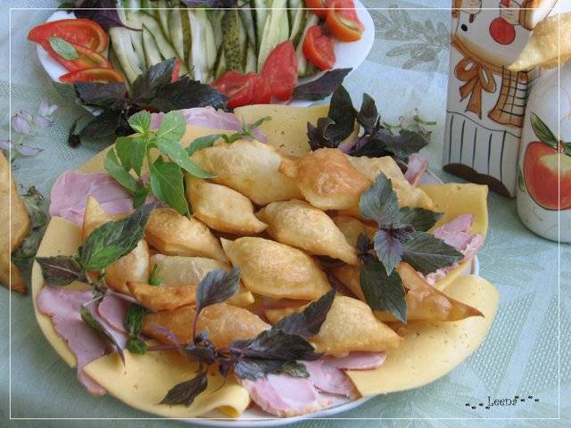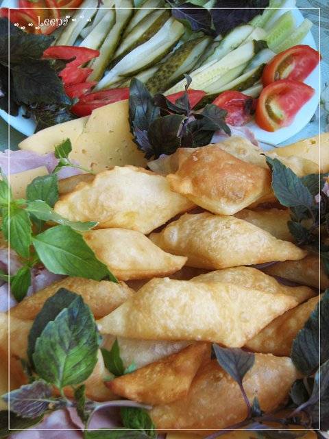 Каждую часть раскатать довольно тонко, почти как на вареники. Лепешку формируем овально. Тесто не липнет к столу, можно даже не подсыпать муку. Чем меньше муки при раскатывании, тем реже придется менять масло.