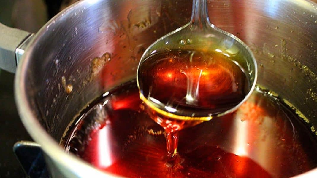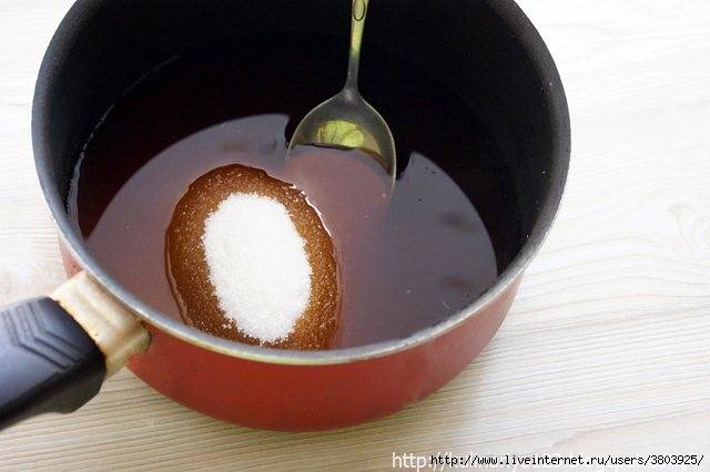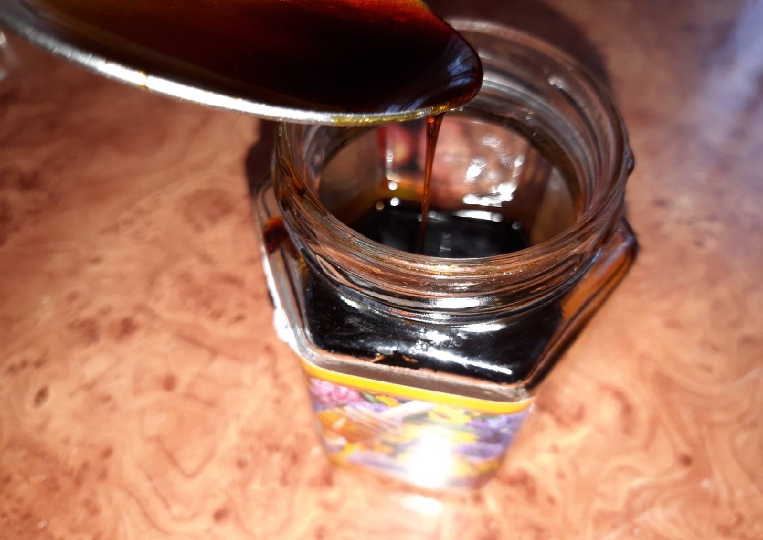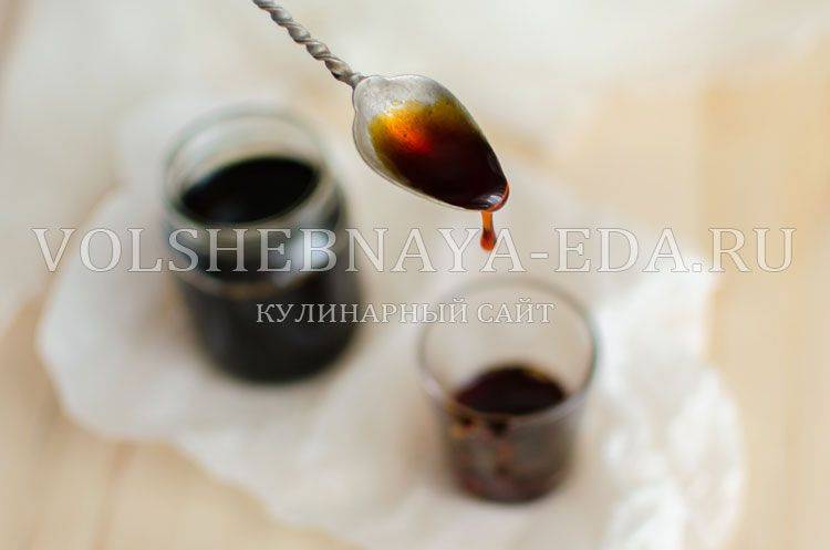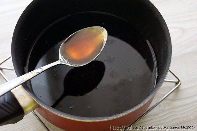В прозрачный отвар добавляют сахар и варят 15 минут. За минуту до отключения огня в сироп добавляют кислоту. Горячим, сироп разливают по небольшим баночкам и завинчивают крышками.