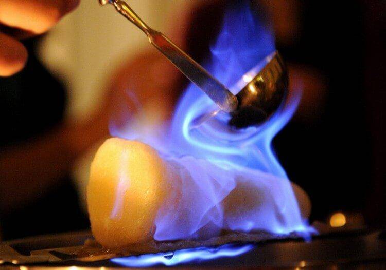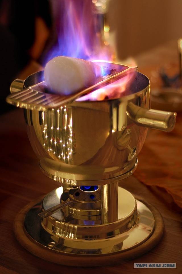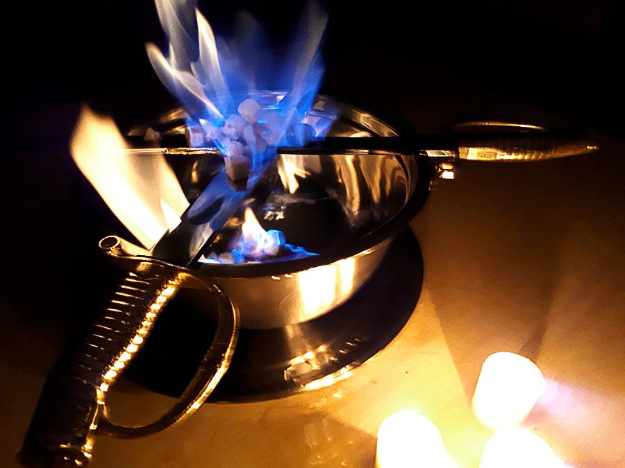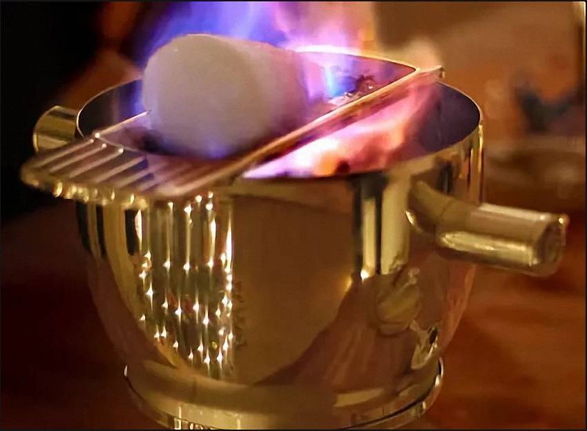 6. Периодически поливать сахар ромом, чтобы горение не прекращалось, пока весь рафинад не расплавится.