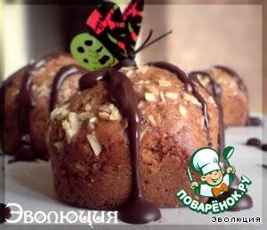 Тесто поднимается очень хорошо. Я сначала положила в формочки по 1 ст. л. теста, присыпала измельченным орехом и сахаром и сверху положила еще по 1 ст. л. теста. Но после выпечки мои кексы пытались разделиться на две части, поэтому следующую партию я выпекала просто: по 1-1,5 ст. л. теста в формочку и сверху присыпаем ореховой крошкой и сахарным песком.