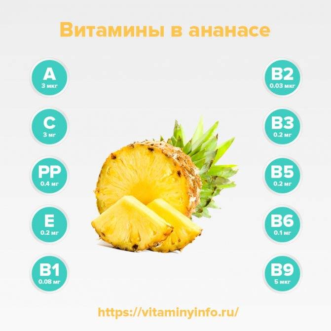 В ананасе содержится огромное количество различных витаминов и микроэлементов, однако их содержание варьируется в отличие от того, сырой это фрукт или приготовленный.
