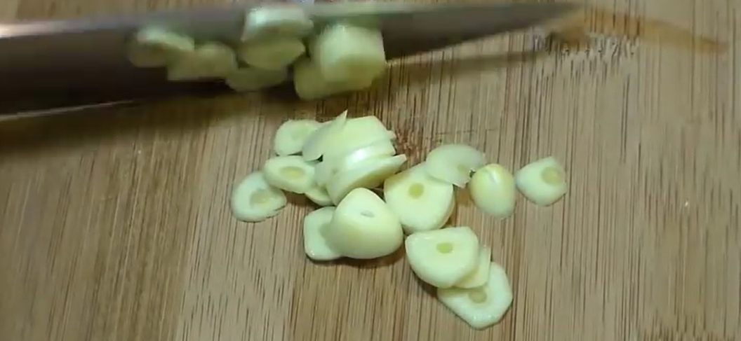 2. Готовим маринад. Чеснок нарезаем крупными колечками, хотя можете и измельчить, это не принципиально.
