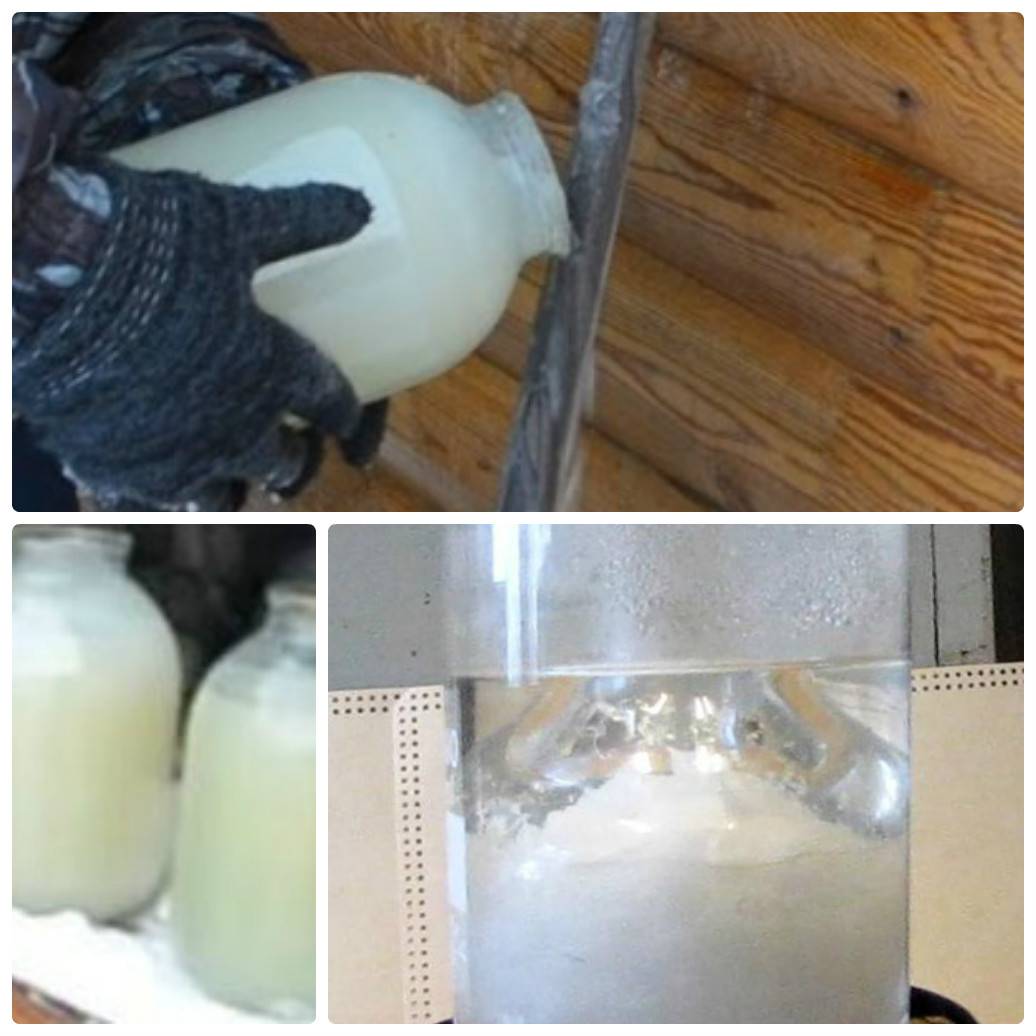 - Подождать 3-4 часа, за это время вода, с плохими смесями, примерзнет к стенкам емкости.