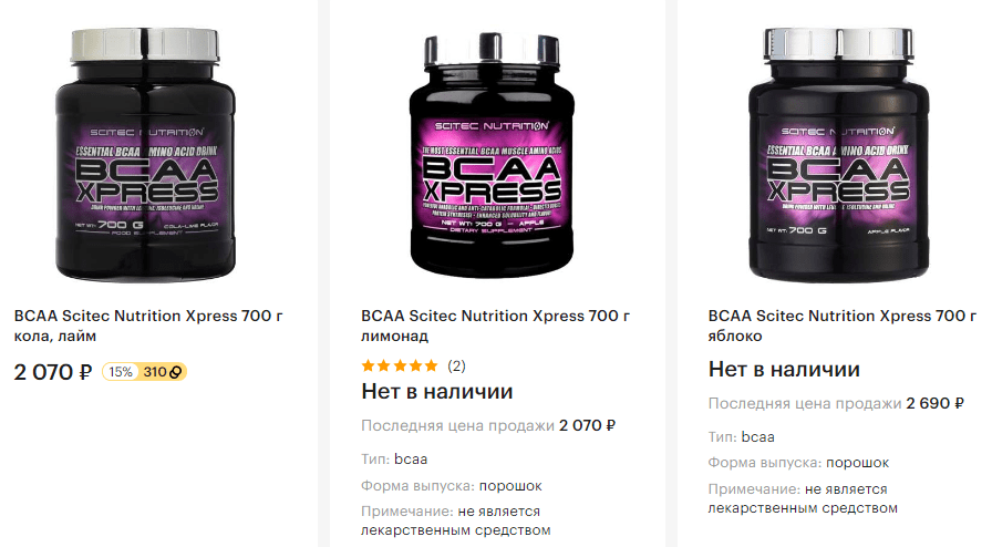 Жидкая форма – чемпион по скорости усвоения и времени действия. Любая жидкость начинает всасываться еще в ротовой полости, так что время, за которое аминокислоты попадут в кровоток, исчисляется считанными минутами. Это особенно актуально для тех, кто проводит высокоинтенсивные тренировки на фоне ограничения калорийности рациона – при подготовке к соревнованиям либо при попытке «влезть» в меньшую категорию. В этих ситуациях прием жидких ВСАА сразу после тренировки и во время нее (не ранее чем через час от начала тренировки) защитит от серьезных потерь мышечной массы по причине катаболизма. Единственный минус жидких ВСАА – высокая стоимость.