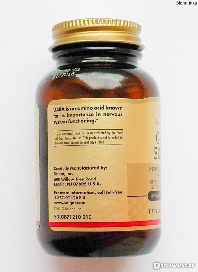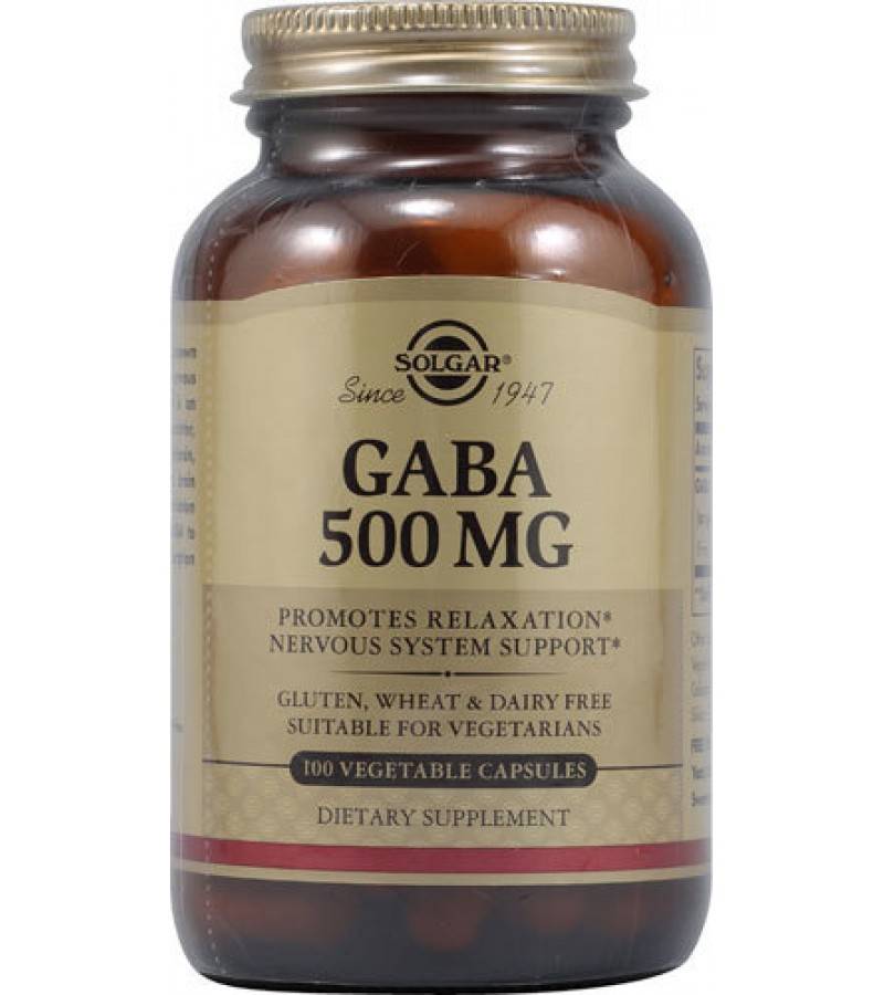 Gaba solgar. Пищевая добавка на растительной основе. В одной капсуле сольгар содержится 500 мг активного вещества. В упаковке 100 капсул. Расслабляет и успокаивает;