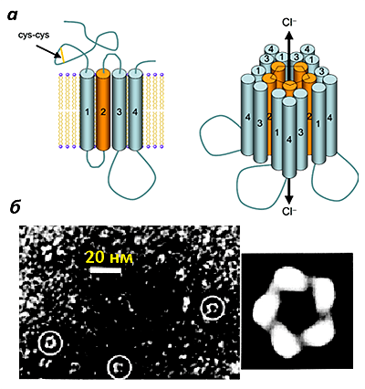 Итак, молекула ГАМК связалась с рецептором ионного канала. Ионный канал, обладающий довольно сложным строением (рис. 3), раскрывается и начинает пропускать внутрь клетки отрицательно заряженные ионы хлора. Под воздействием этих ионов происходит гиперполяризация мембраны, и клетка становится менее восприимчивой к возбуждающим сигналам других нейронов. Это первая и, пожалуй, главная функция ГАМК — торможение активности нервных клеток в нервной системе.