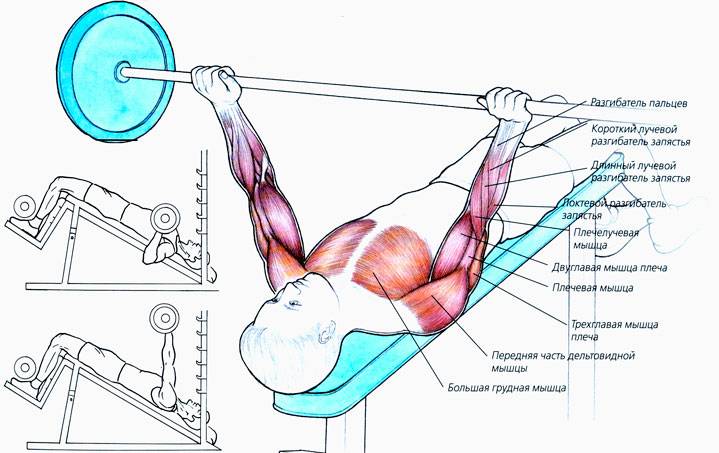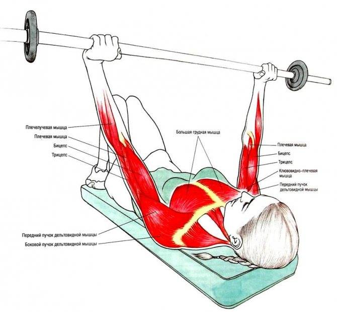 - Ваши плечи находятся в опасном положении. Они прижаты к скамье, так они не могут поворачиваться и помогать в движении. Из-за риска травмы плечевого сустава многие спортсмены избегают это упражнение.