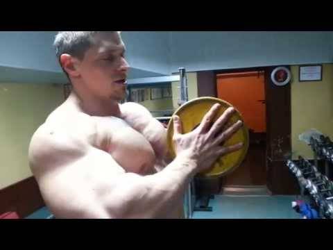 - Не нужно выбирать слишком тяжелые гантели. Большой вес позволяет получить существенную гипертрофию, но если спортсмен не может удержать грифы в одной плоскости, «тянет» гантели вверх за одну сторону, и активно переразгибает при этом локти, он провоцирует травму. Небольшая «тряска» мышц и нестабильность допускаются на последних повторениях.