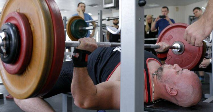 Спина должна быть стабильной, а не нейтральной. Не допускаются «прыжки» по скамье, попытки протолкнуть вес вверх, и изменение положения поясницы. Если она будет чуть прогнута, и спортсмену комфортно в таком положении – ничего страшного.