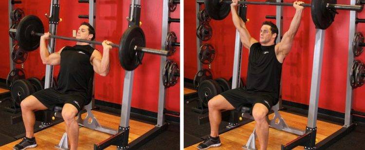 Жим штанги сидя — это одно из основных упражнений для проработки дельт. Во время выполнения этого жима задействованы:
