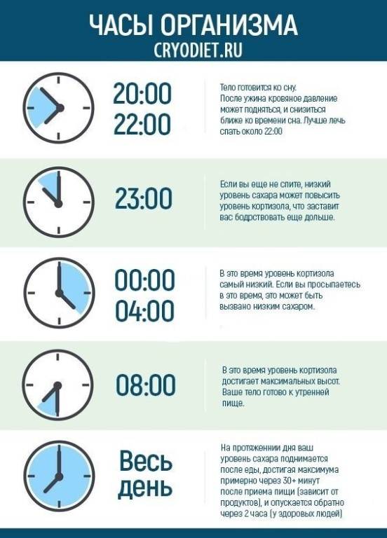 Из-за стрессов, тяжелых рабочих дней, ночных смен, перелетов и других причин в организме происходит сбой циркадных ритмов. Прежде всего, на ритмы влияет освещение, поэтому трудно засыпать при дневном свете и бодрствовать ночью. К тому же, когда светло, организм не вырабатывает гормон сна мелатонин, который способствует качественному сну. Чтобы настроить циркадные ритмы, попробуйте засыпать и просыпаться всегда в одно время и соблюдать остальные рекомендации, о которых написано ниже. При необходимости используйте добавку мелатонина к пище.