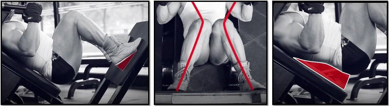 - При правильном положении стопы полностью прижаты к платформе. Положение, когда стопы строго параллельны друг другу не является обязательной. Не должно получаться так, чтобы человек испытывал дискомфорт в коленях;