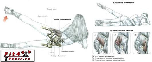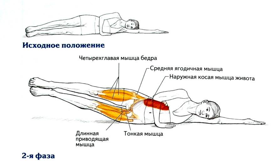 - Верните ногу в исходное положение. Повторите заданное количество раз и перевернитесь на другой бок.