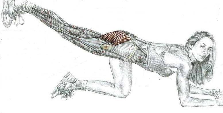 Большая мышца таза, занимает почти всю его поверхность. Она придает форму и внешний вид ягодицам. Ее функции: поддержания тела в положения стоя. Разгибание туловища после наклона вперед. Поворачивает бедро наружу и участвует в его разгибании.