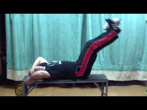 Подъем ног лежа на скамье. Упражнение для мышц пресса