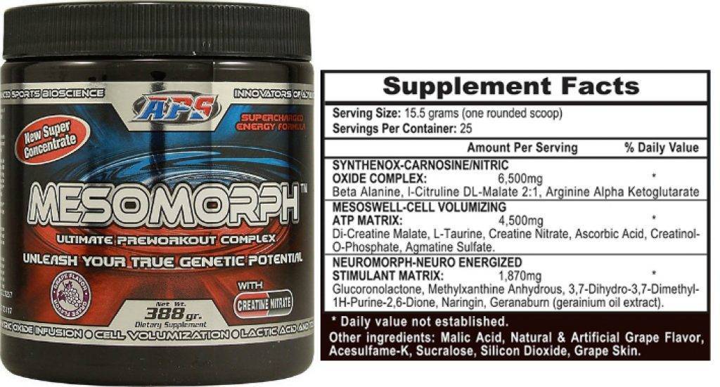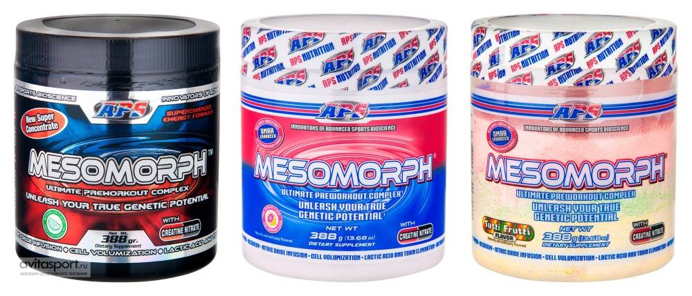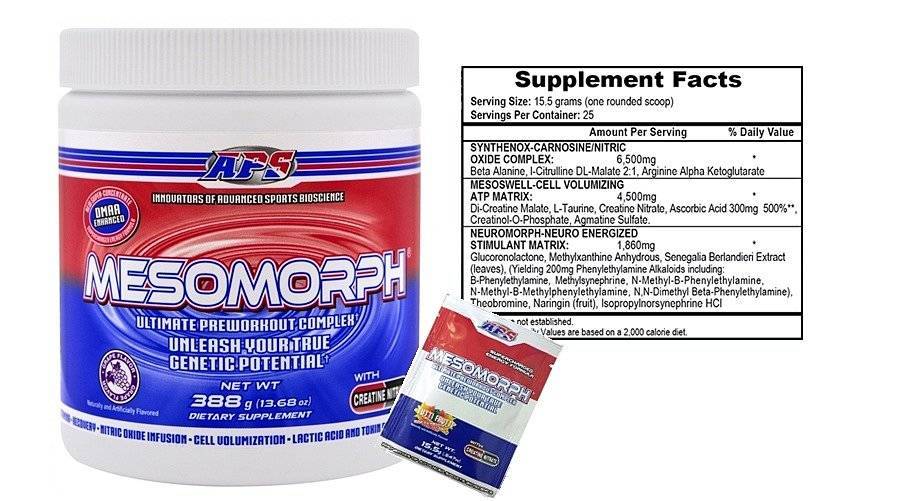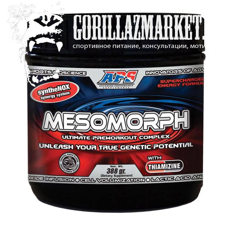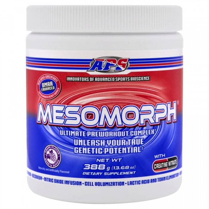 Что входит в состав данного предтреника от APS. Как он действует на организм. Как его правильно пить. Когда разработчики APS берутся за дело, у них неизменно получается качественный продукт. Не исключением стал и mesomorph – мощный предтренировочный комплекс для представителей силовых видов спорта. Основное его действие – невероятный пампинг, мощный приток энергии, увеличение силы и выносливости. Прием комплекса mesomorph превращает тренировки в настоящее удовольствие.
