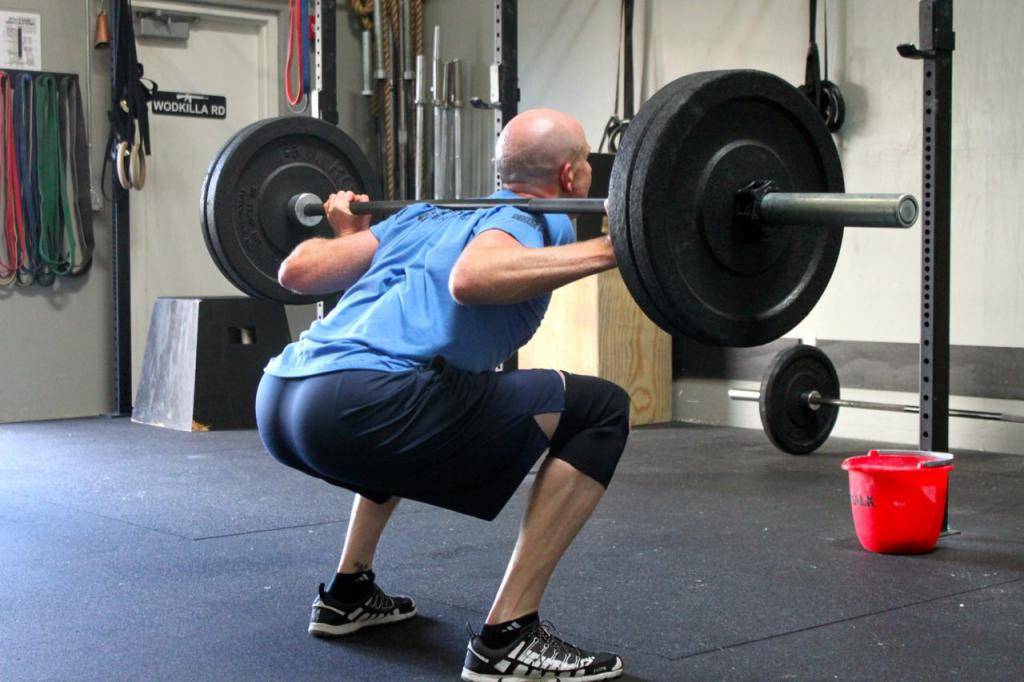 В положении глубокого приседа коленные суставы максимально согнуты, так что сила квадрицепсов и мышц задней поверхности бедра (седалищно-подколенных) ограничивается в начале подъёма (чем сильнее согнут сустав, тем меньше сила мышц при его разгибании).