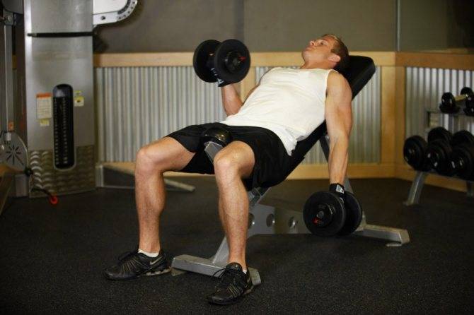 Либо работая на горизонтальной скамье сидя, или лежа на наклонной скамье.