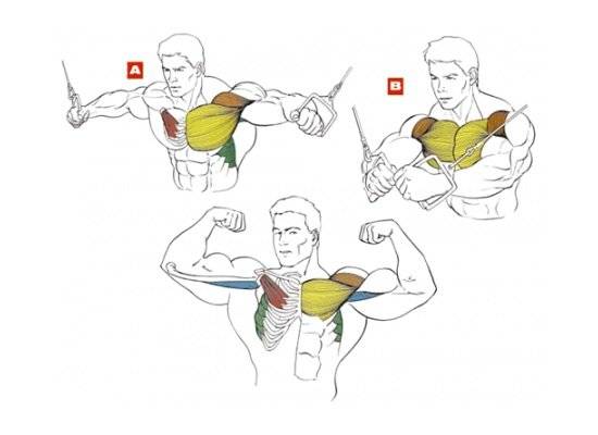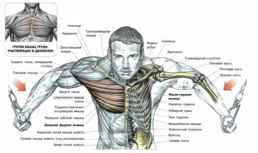 В отличие от других упражнений для развития мышц груди, например, жима лежа, в движении практически не участвуют трицепсы и дельтовидные мышцы.