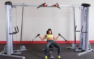 Для выполнения кроссоверов нам понадобится блочный тренажер. В большинстве тренажерных залов он есть. Дома, конечно же, тренироваться не получится. Как выглядит тренажер, смотри на фото.