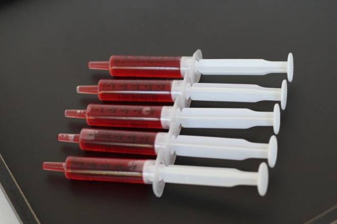 • Шприцы. Подать коктейли можно и в шприцах! Это очень поднимает настроение настоящим вампирам. Понятно, что внутри должна быть красная жидкость.