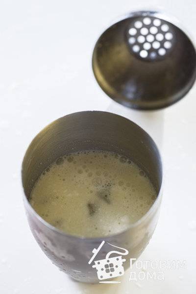Закрыть шейкер и хорошо потрясти, чтобы смешались все ингредиенты и образовалась пенка от кокосового молока.