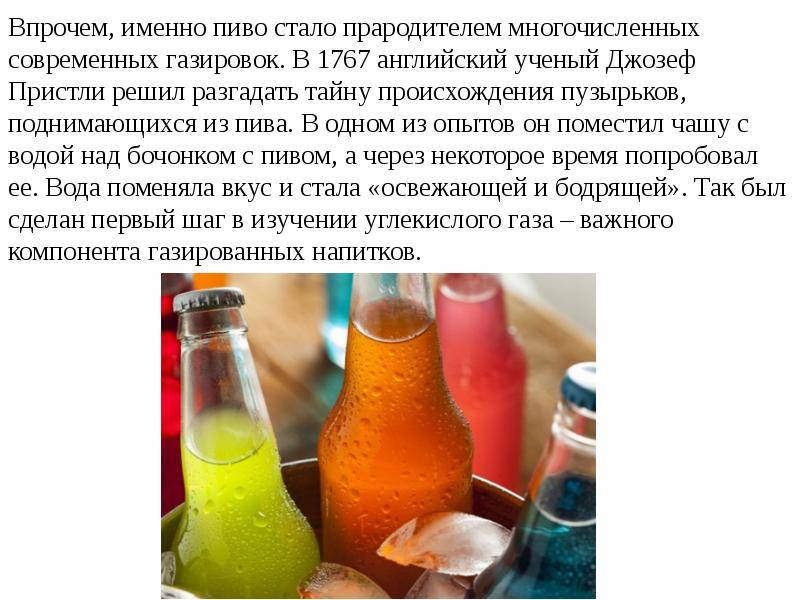 Популярный напиток торговой марки Гиннес считается уникальным, потому что пузырьки в нем опускаются вниз, а не стремятся вверх, как обычно. Все объясняется технологией производства, предусматривающей использование не углекислого газа, как обычно, а азота, который в воде ассимилируется хуже.